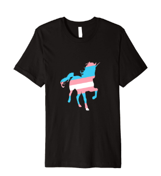 Auf diesem unvergleichlichen T-shirt trägt das Einhorn mit Stolz die Transgender Flaggen Farben.